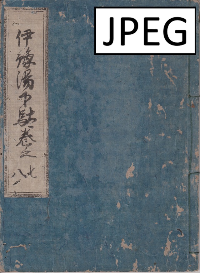 伊豫簾 上 元の本のサイズ 幅約17cm 長さ約22.5cm 解像度 300dpi 用紙サイズ 開いた状態でA4サイズにPDF出力しています。 ページ枚数 42(表紙・裏表紙を入れてます) ※古書のため、スレ、汚れ、虫穴などがあります。 古書が傷まないようにスキャンニングしておりますので、ページに歪みや鮮明にスキャンニングできていない箇所などが生じている場合があります。 ■松山兎月庵文化歴史館所蔵